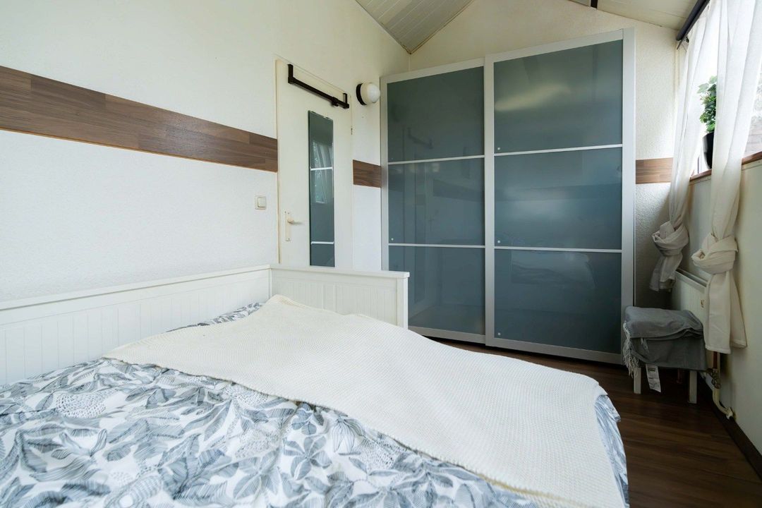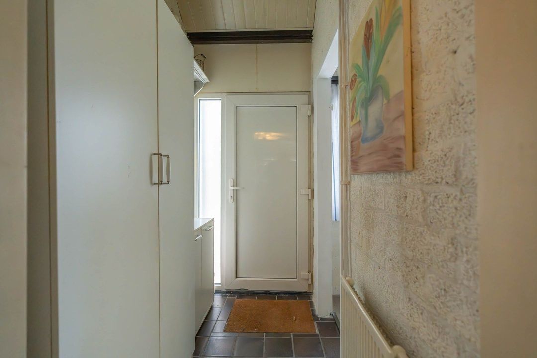Overloop met berging met opstelling van wasmachine en cv-combiketel (2022). Tweede slaapkamer met eveneens een fijne lichtinval door de brede raampartij.
