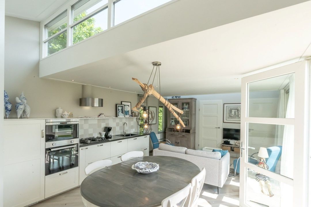 - De ruime woonkamer heeft veel natuurlijk licht door de grote puien. U loopt vanuit het chalet direct de grote zonnige tuin in te lopen om daar te gaan genieten van een boek, de zon en rust of juist van een lekkere maaltijd.