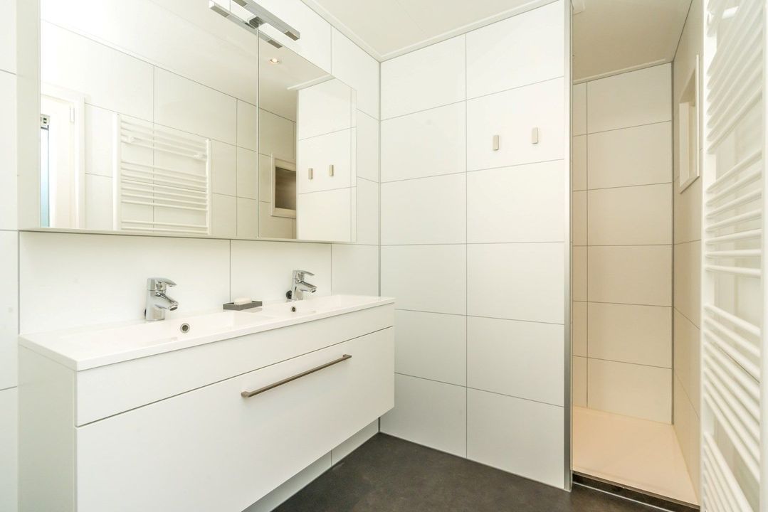 - Zijdelings langs de woonkamer liggen drie slaapkamers en een badkamer met inloopdouche en dubbel wastafelmeubel.