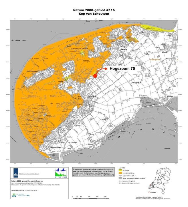 De woning ligt aan de Hogezoom 75. De Hogezoom is inmiddels afgesloten voor doorgaand verkeer, waardoor enkel bestemmingsverkeer, fietsers en voetgangers gebruik maken van de weg. Dit zorgt voor een bijzonder rustige en veilige woonomgeving met veel privacy. Door het natuurgebied loopt nog de voormalige Vroonweg - tegenwoordig onderdeel van een prachtig fiets- en wandelpad dat Burgh-Haamstede met Renesse verbindt. Dit pad voert door de Vroongronden: een open, grazige landschap met weidevogels en duinvegatatie, waar ook het Gadrabos deel van uitmaakt. De woning ligt op korte afstand van dit bos en biedt een uniek uitzicht over het laagduinlandchap en de Vroongronden. Een uniekere locatie bestaat niet!
