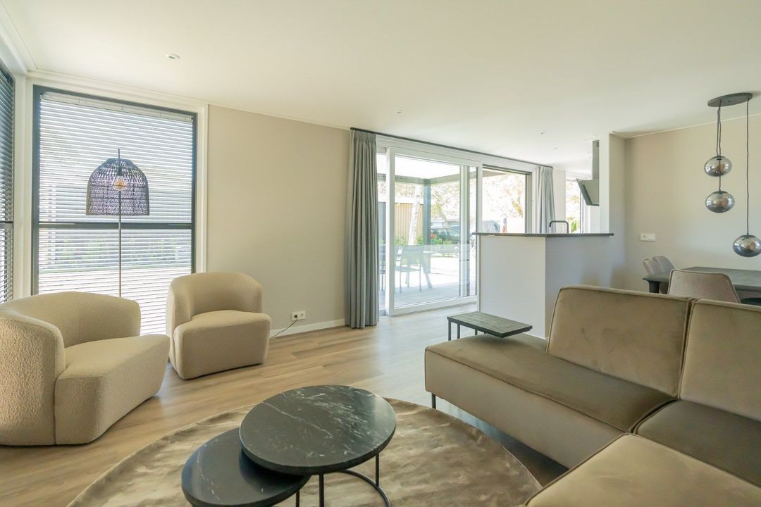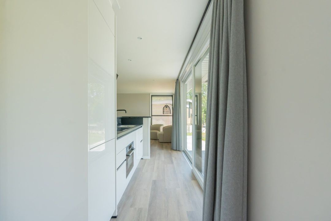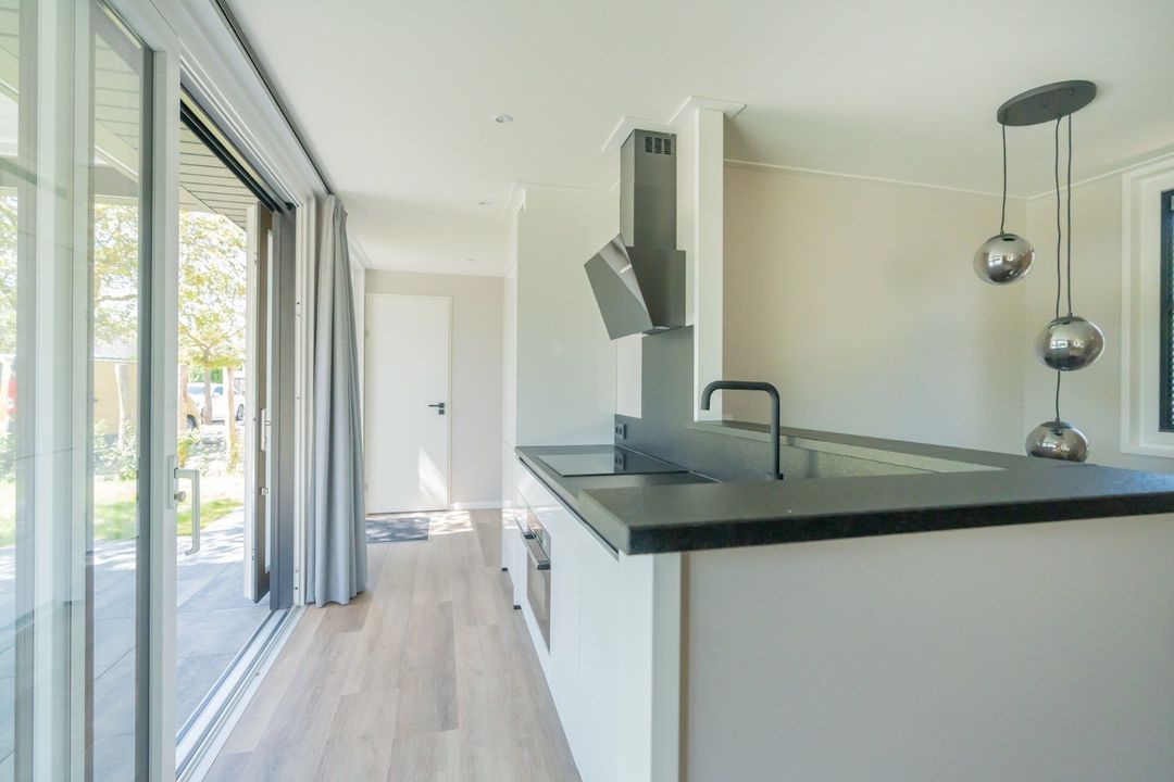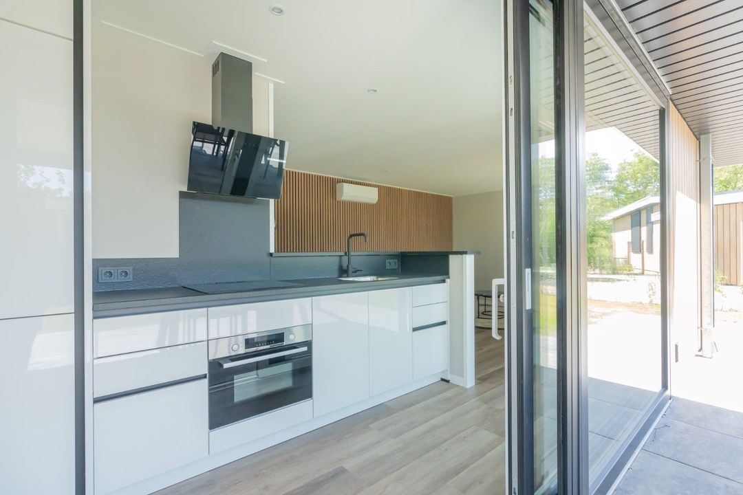 - De keuken met baropstelling is modern en uitgerust met een ingebouwde vaatwasser, combi-oven, koel- en vrieskast, inductiekookplaat en afzuigkap. Aan de voorzijde van de baropstelling bevindt zich de eethoek, waar heerlijk genoten kan worden van de verse maaltijden. Aan de andere kant bevindt zich een grote schuifpui zodat u direct zicht en toegang heeft tot het prachtige terras en tuin.
