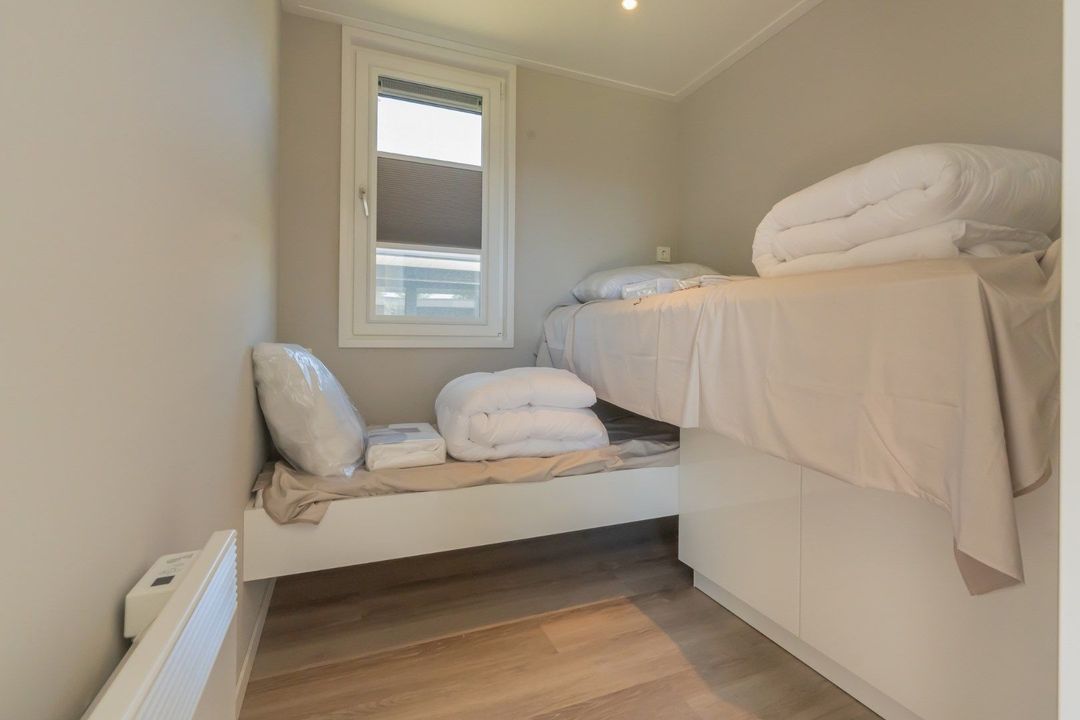 - 2 slaapkamers waarvan één masterbedroom met weghangkasten, en één met bed-over-bed opstelling, ontworpen en ideaal voor het gezin en de kinderen.