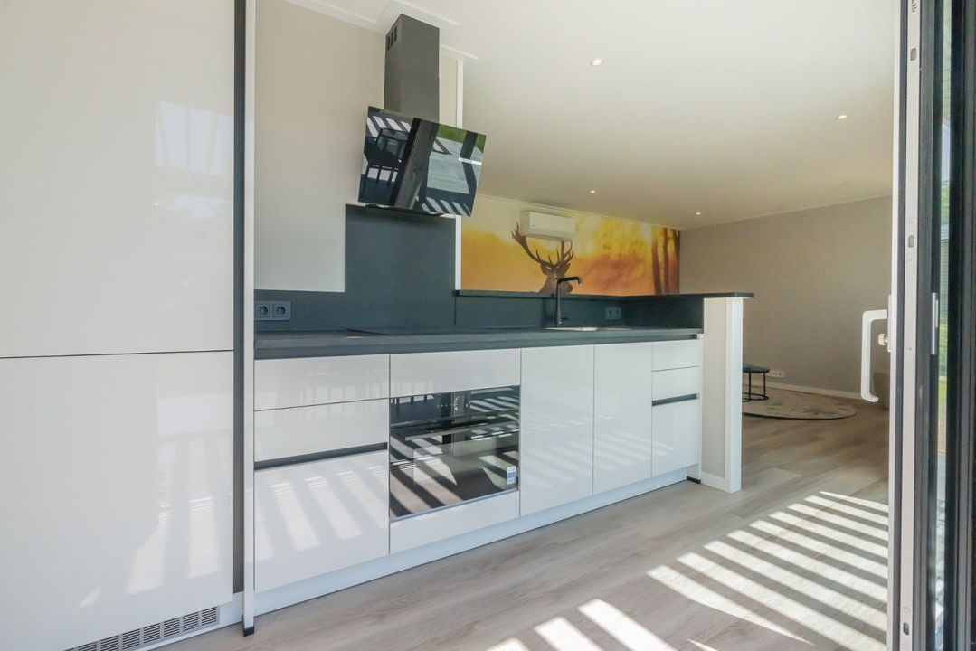 - een comfortabele keuken in de vorm van een chique baropstelling met een koel/vries combinatie, een 4-pits inductiekookplaat, een vaatwasser en een combi-oven.