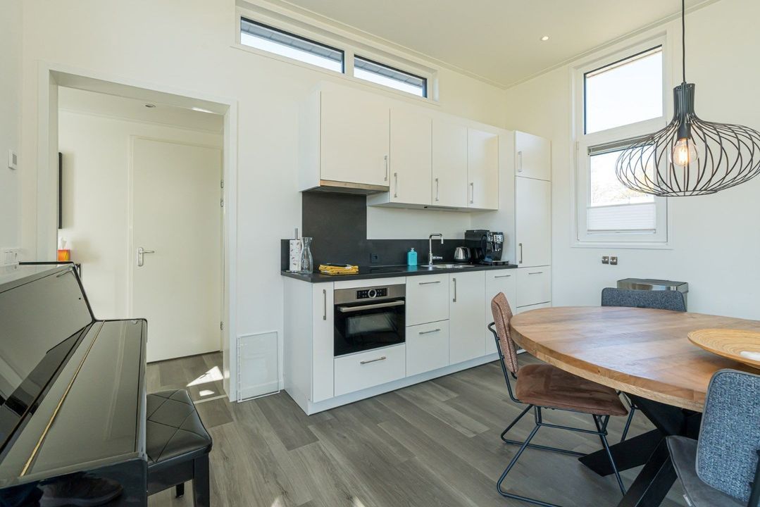 - Open keuken met inbouwapparatuur, waaronder een combi-oven, inductiekookplaat, koel-vriescombinatie en vaatwasser