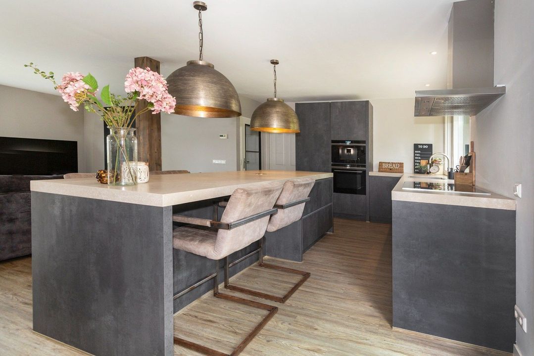- Luxe woonkeuken in hoekopstelling met ziteiland. Inbouwapparatuur van Siemens o.a. inductiekookplaat met flexzone, koffieautomaat, combi-oven, koel/vries combinatie, afzuigkap, vaatwasser en Quooker