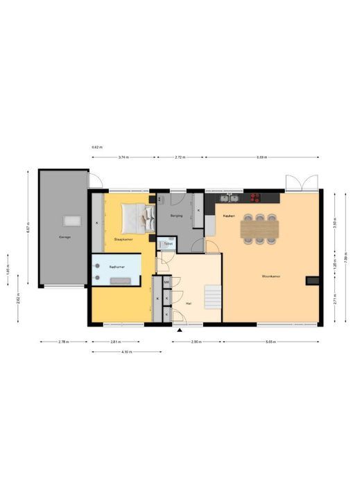 - Garage met vliering – ideaal als hobbyruimte, kantoor, praktijk aan huis of B&B (vliering 2,45 m hoog)