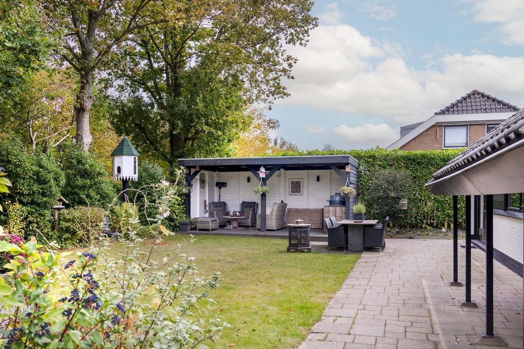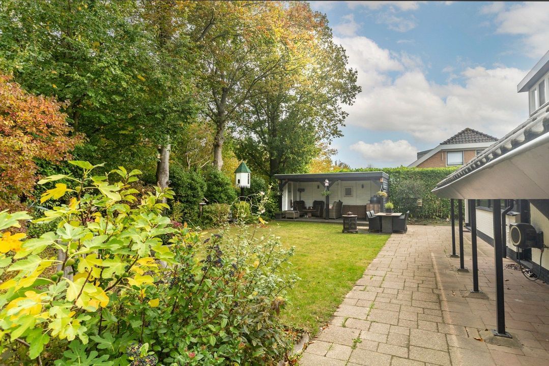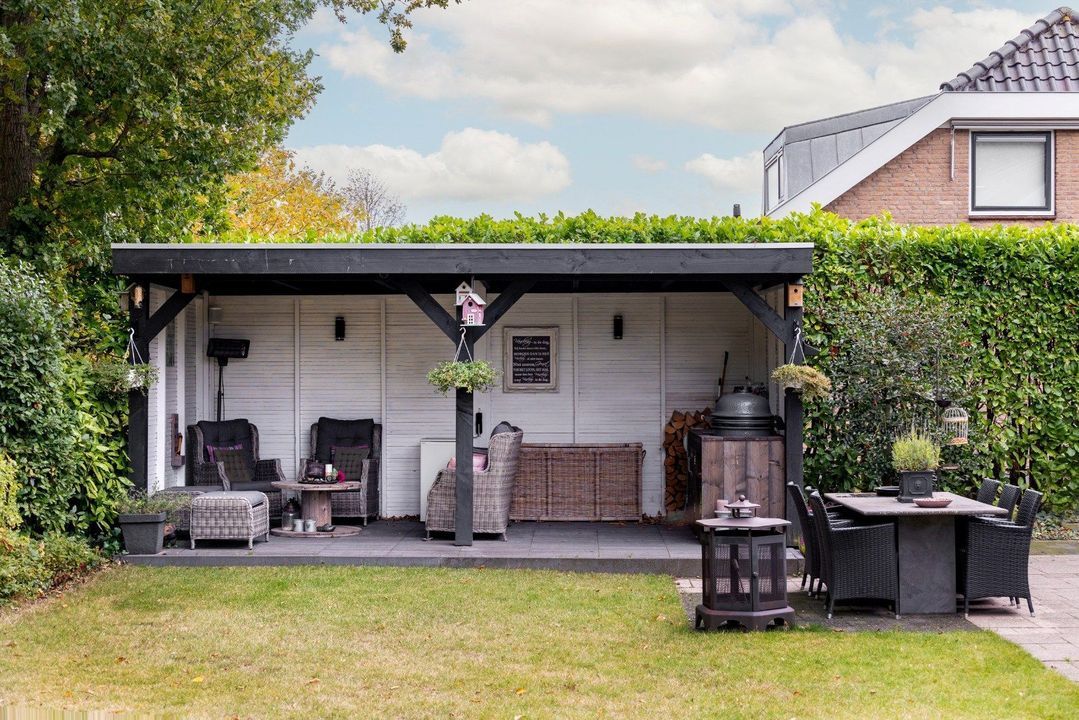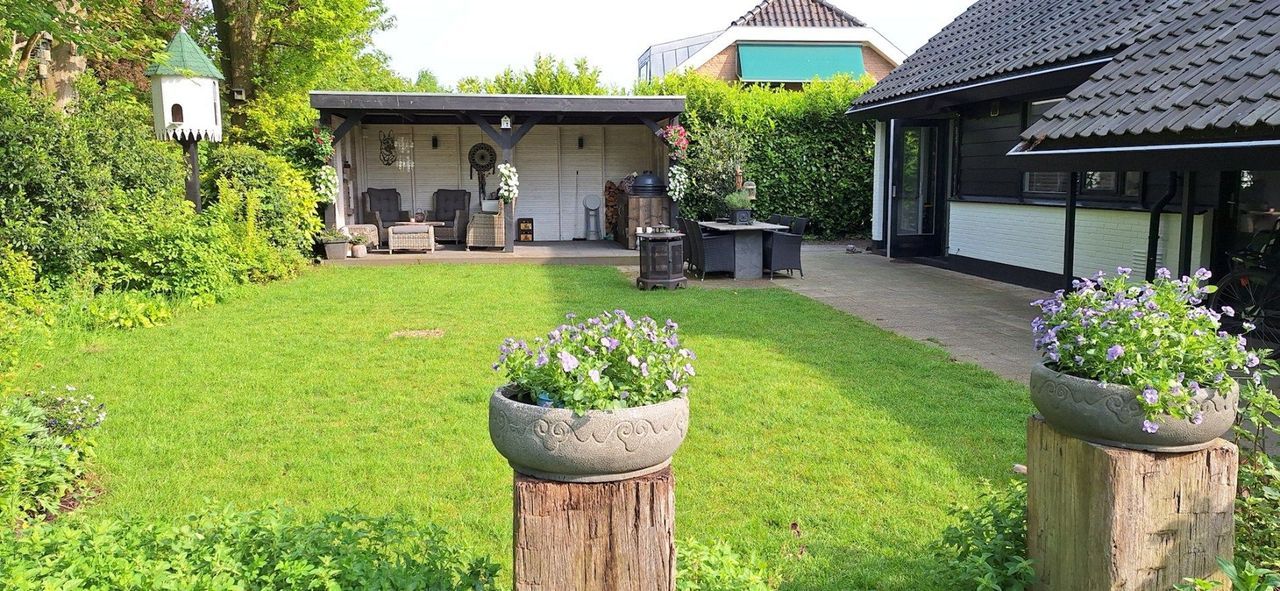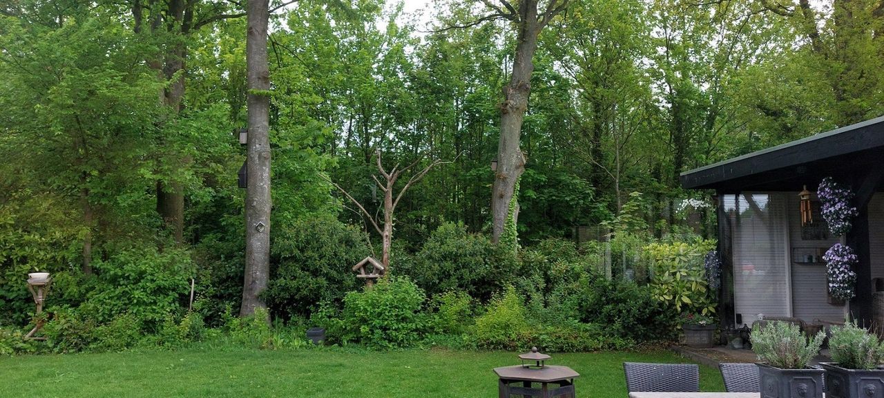 - Royale tuin met volop privacy en sfeer met twee privé-opritten, veel groen en een vogelrijke omgeving, De vogels voelen zich hier helemaal thuis en laten zich graag horen! De tuin beschikt over meerdere terrassen, zodat je altijd een plekje in de zon kunt kiezen. Onder de overkapping van duurzaam Douglas hout, voorzien van elektra, zit je heerlijk beschut
