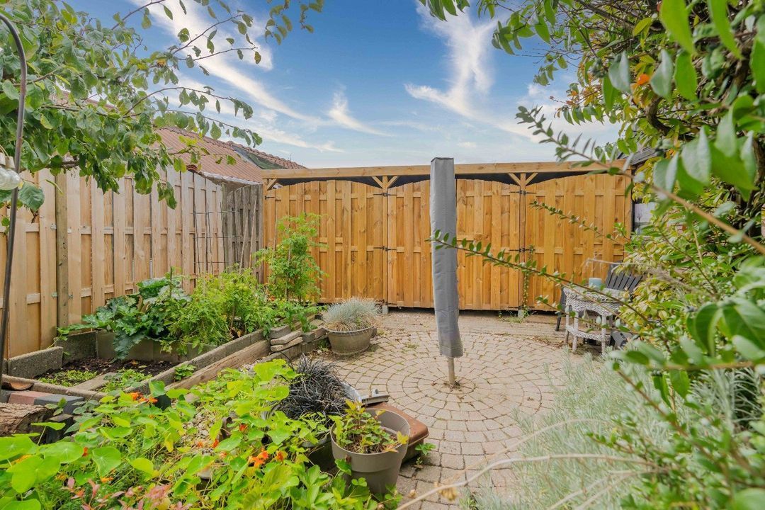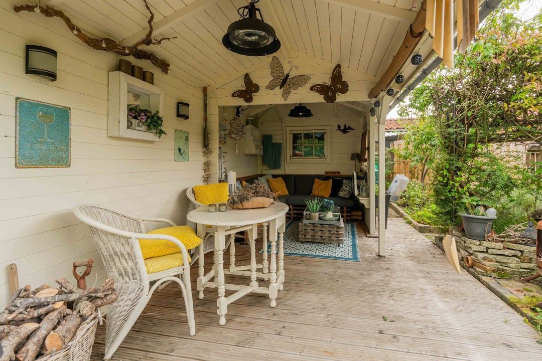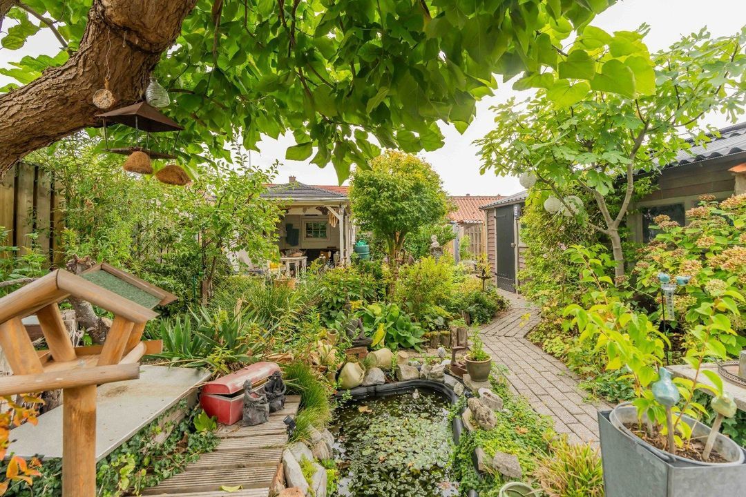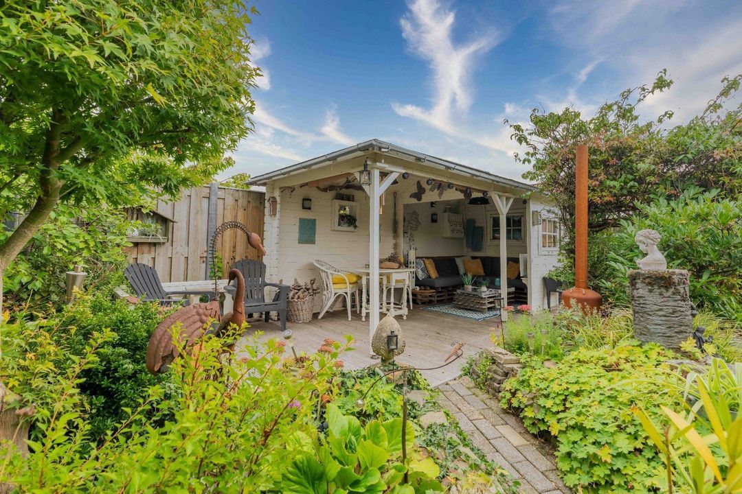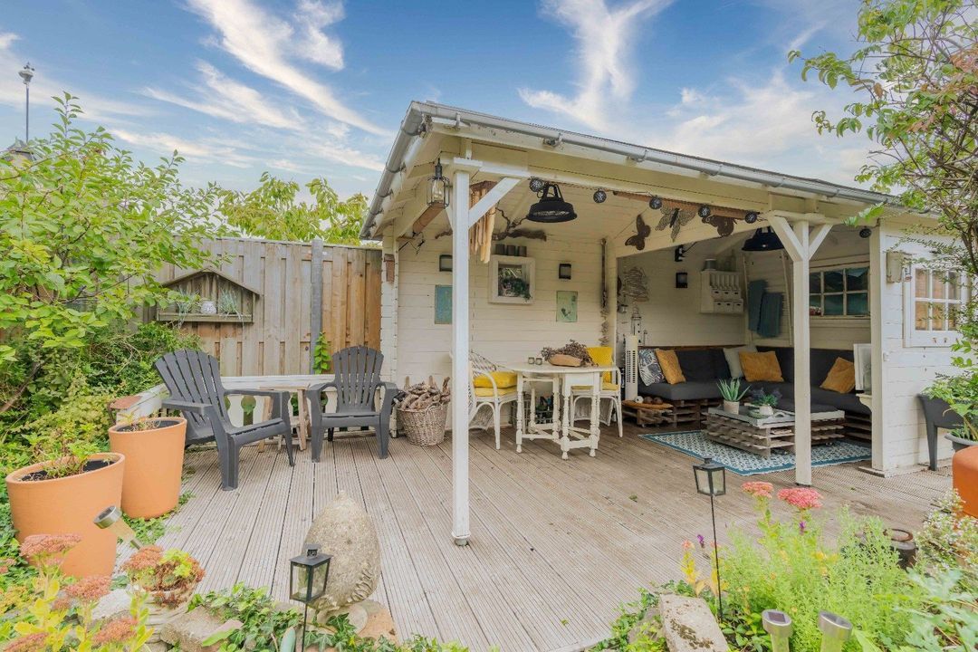- Fraai aangelegde tuin op het zuiden met veel privacy, houten vlonder, verwarmde overkapping en vrijstaande schuur – gelegen op 287 m² eigen grond