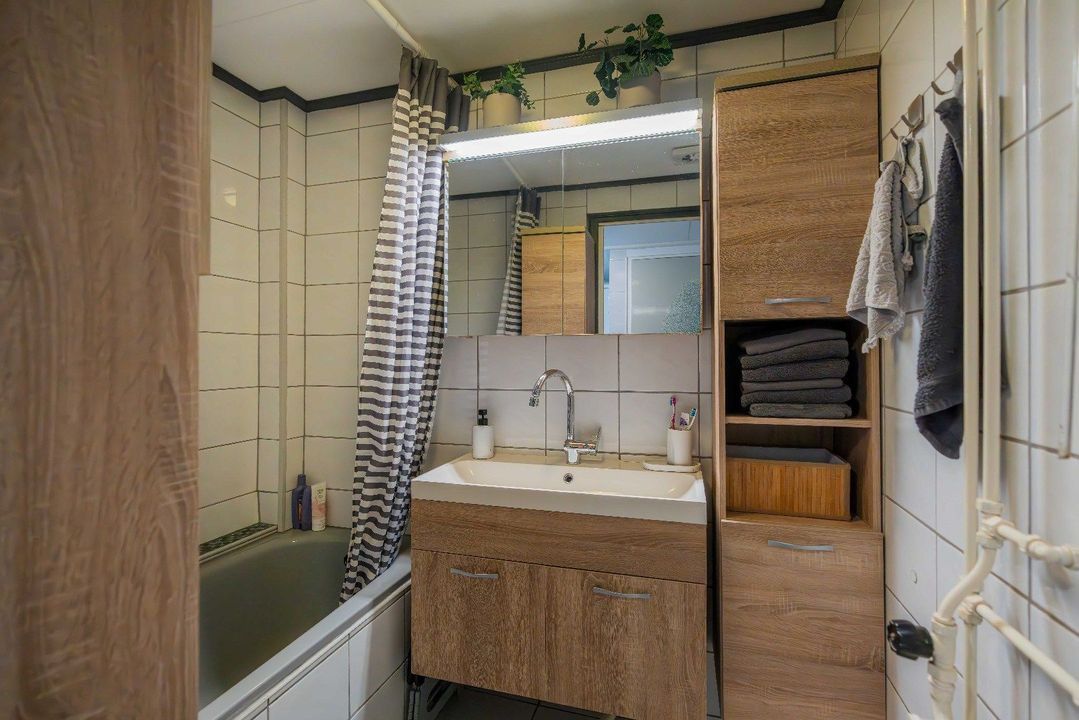 - Badkamer op de begane grond met ligbad, wastafel, opbergkastjes en radiator