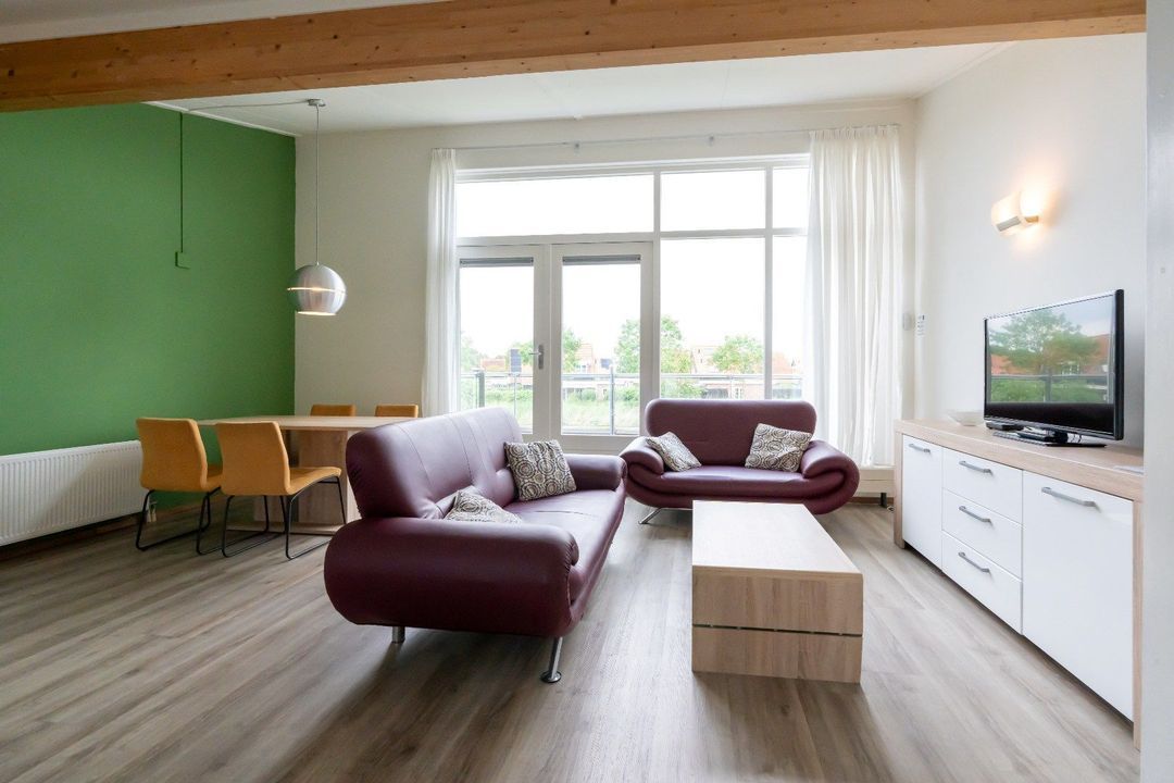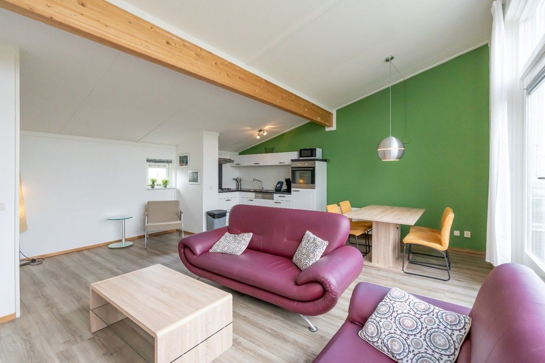 - Ruime woonkamer met panoramisch uitzicht over het water; de schuifpui biedt toegang tot het dakterras