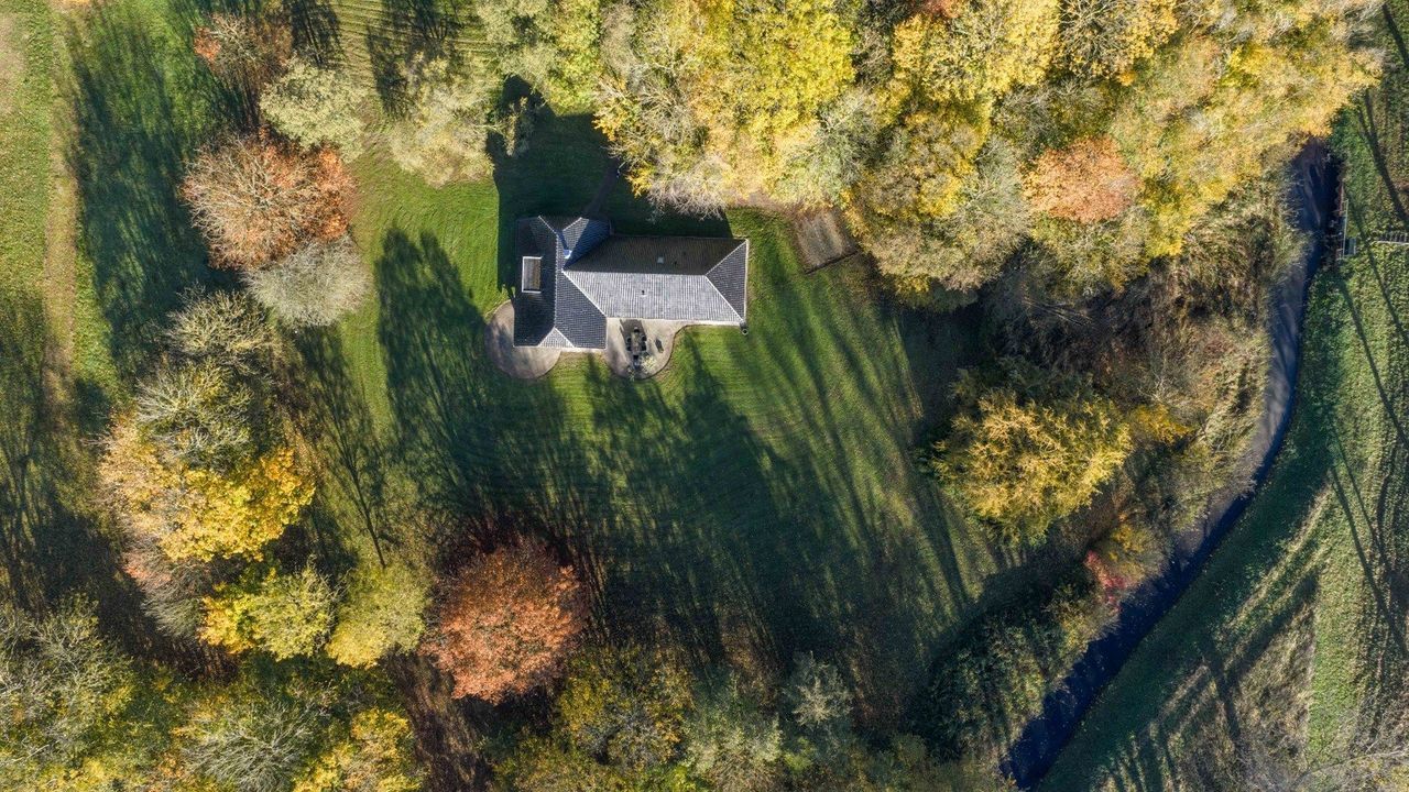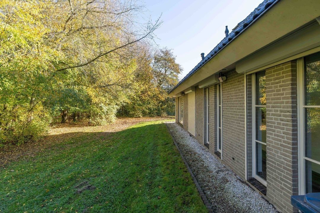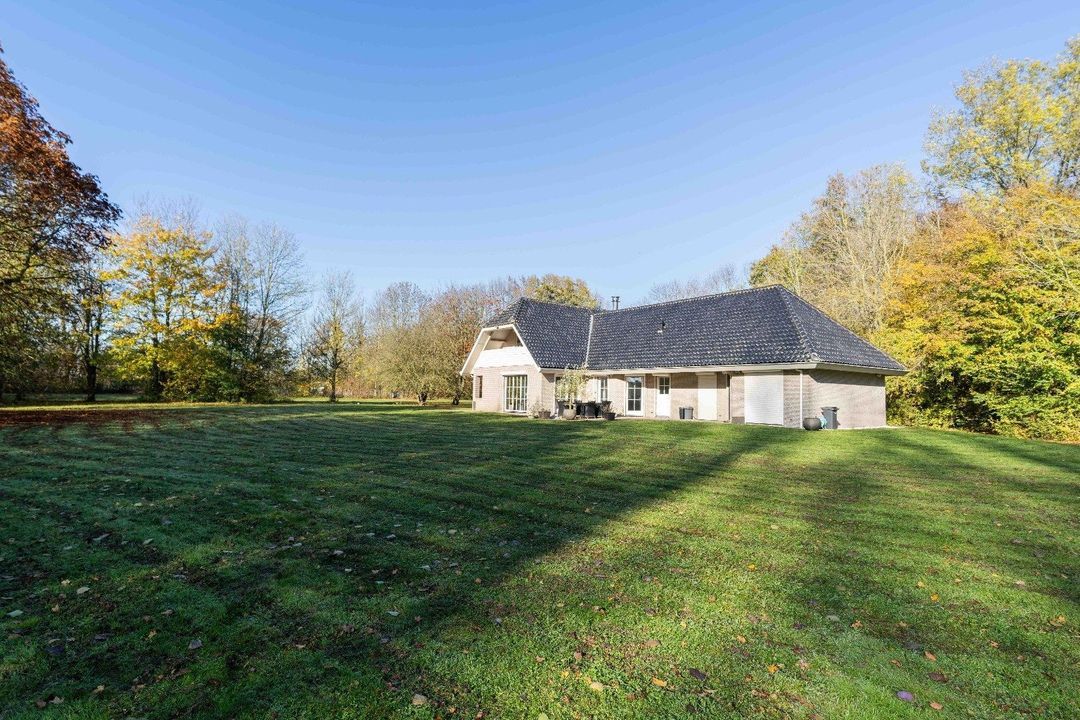 Op dit royale perceel van 23.550 m² eigen grond ligt, verscholen tussen volwassen groen, een karaktervolle vrijstaande semi-bungalow in L-vorm.