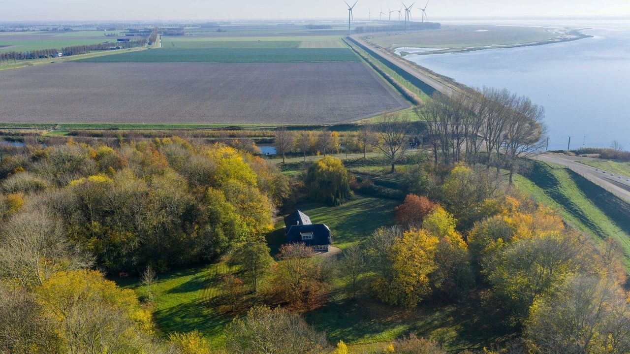 De locatie ademt contrast: beschut en ingetogen binnen de dijk, maar op steenworp afstand het eindeloze weidsheid van het Krammer-Volkerak water. Een zeldzame combinatie van rust, ruimte en verbinding met de natuur.