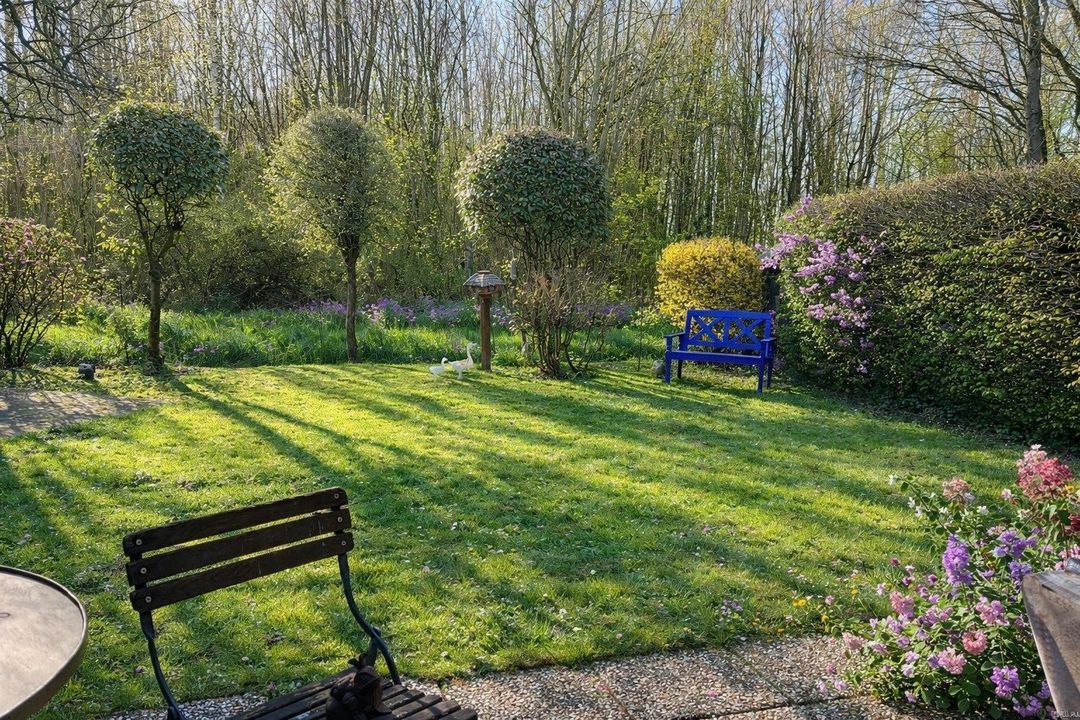 - Vrij uitzicht vanuit de woonkamer op de groene tuin en het achterliggende bos