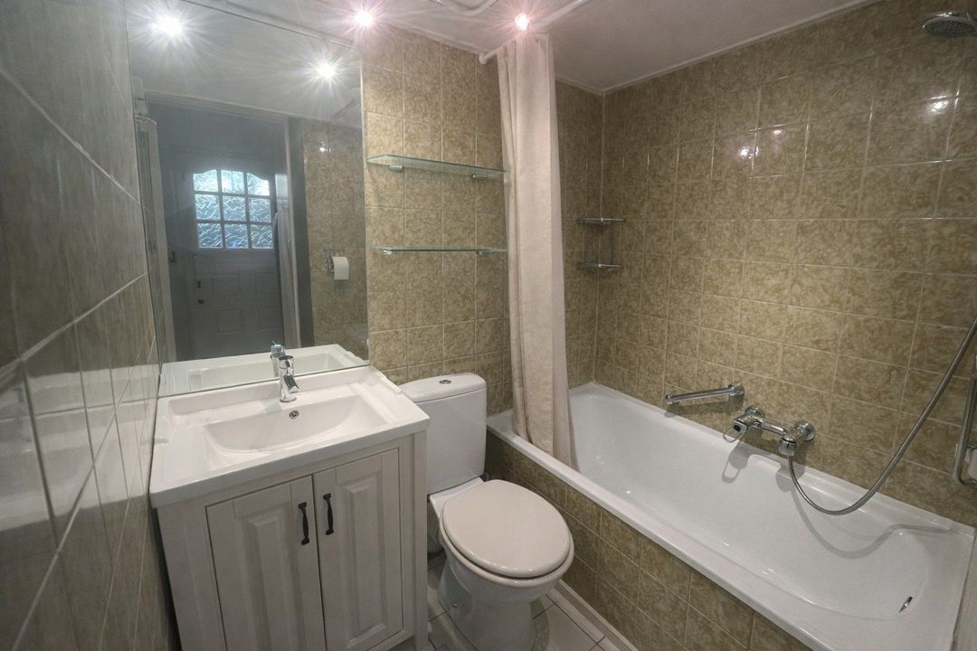 - Badkamer met douchebad, wastafelmeubel en toilet