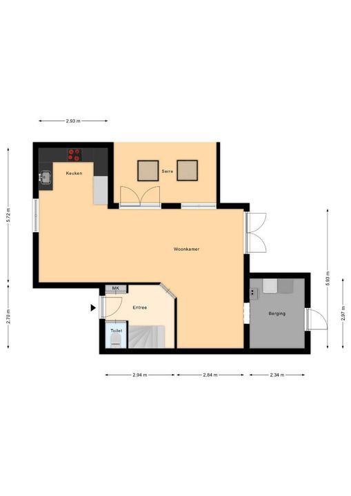 - Hal met meterkast, apart toilet en draaitrap naar de verdieping
