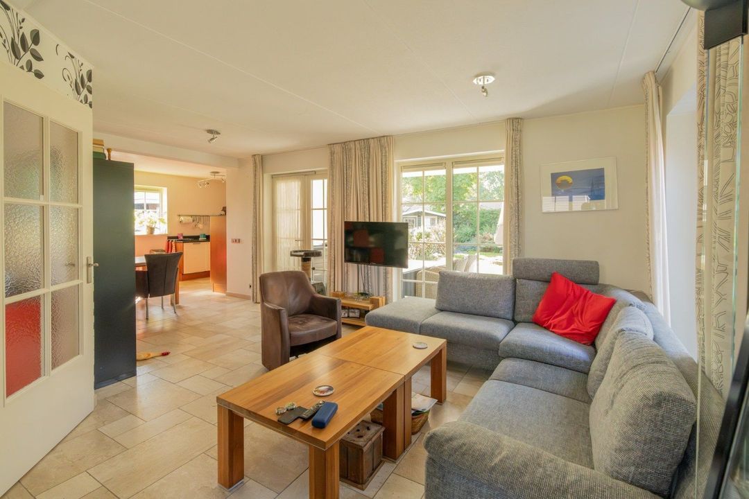 - Lichte woonkamer met openslaande deuren naar twee terrassen en een sfeervolle overkapping met dakramen