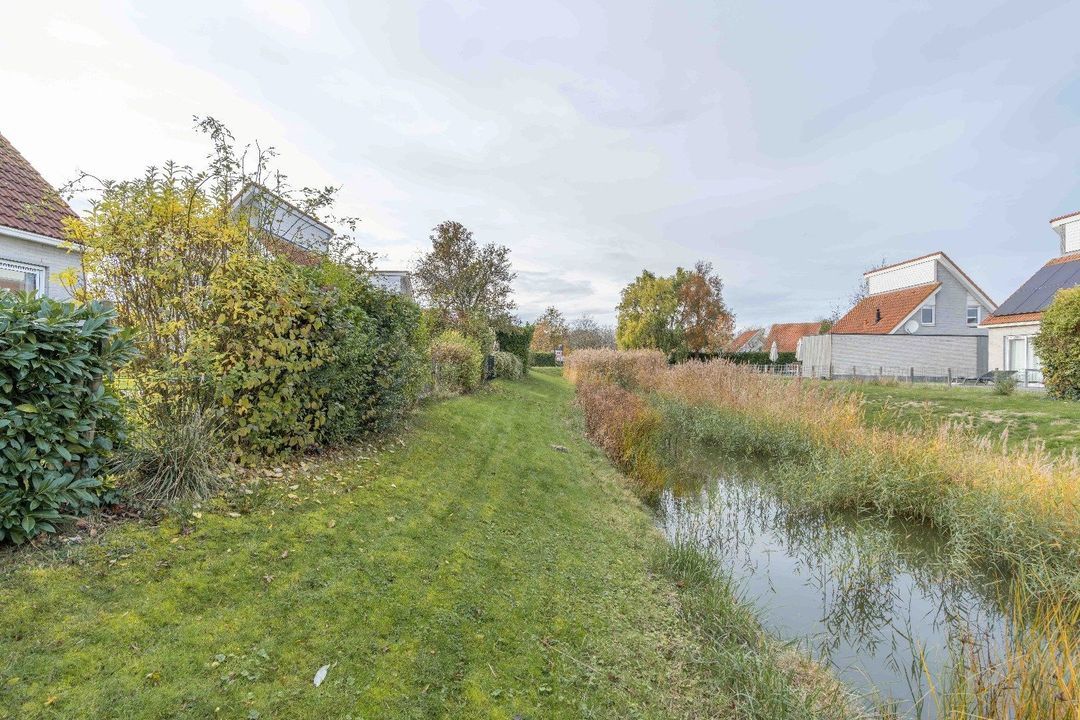 Das Haus befindet sich in einer sehr attraktiven Lage innerhalb des Parks: in einer Sackgasse (nur für Anliegerverkehr) mit einem schönen Rasen mit Teich auf der einen Seite und einem Grünstreifen mit Graben auf der anderen Seite. So genießen Sie viel Ruhe, Platz und Privatsphäre.