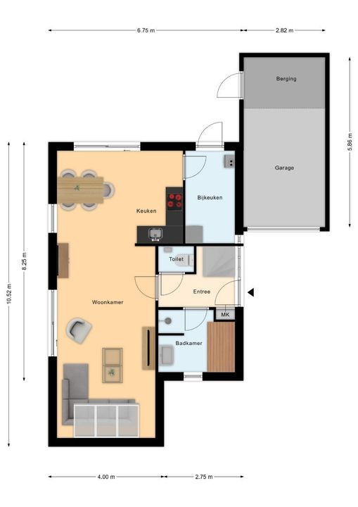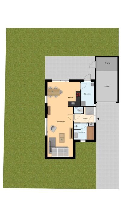 - Bijkeuken met witgoedaansluiting en extra bergruimte.