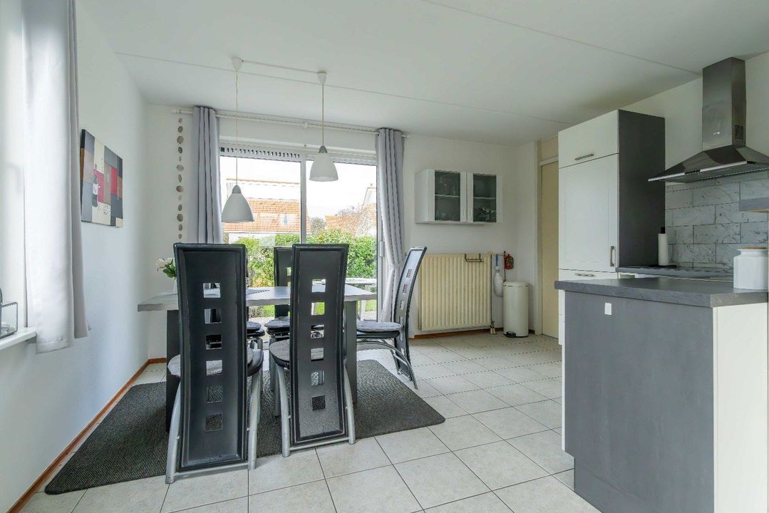 - Hoekkeuken voorzien van inbouwapparatuur: combi-oven, keramische kookplaat en koelkast met vriezer.