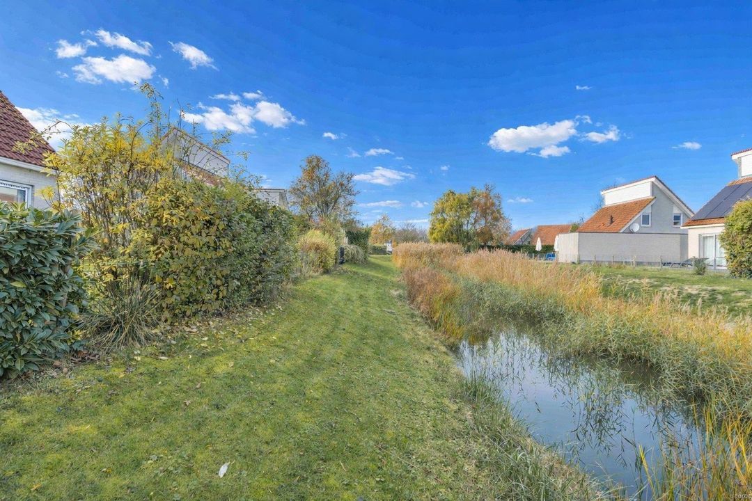 De woning bevindt zich op een zeer aantrekkelijke locatie binnen het park: in een doodlopende straat (alleen bestemmingsverkeer) met aan de ene zijde een fraai grasveld met vijver en aan de andere zijde een groenstrook met sloot. Hierdoor ervaart u veel rust, ruimte en privacy.