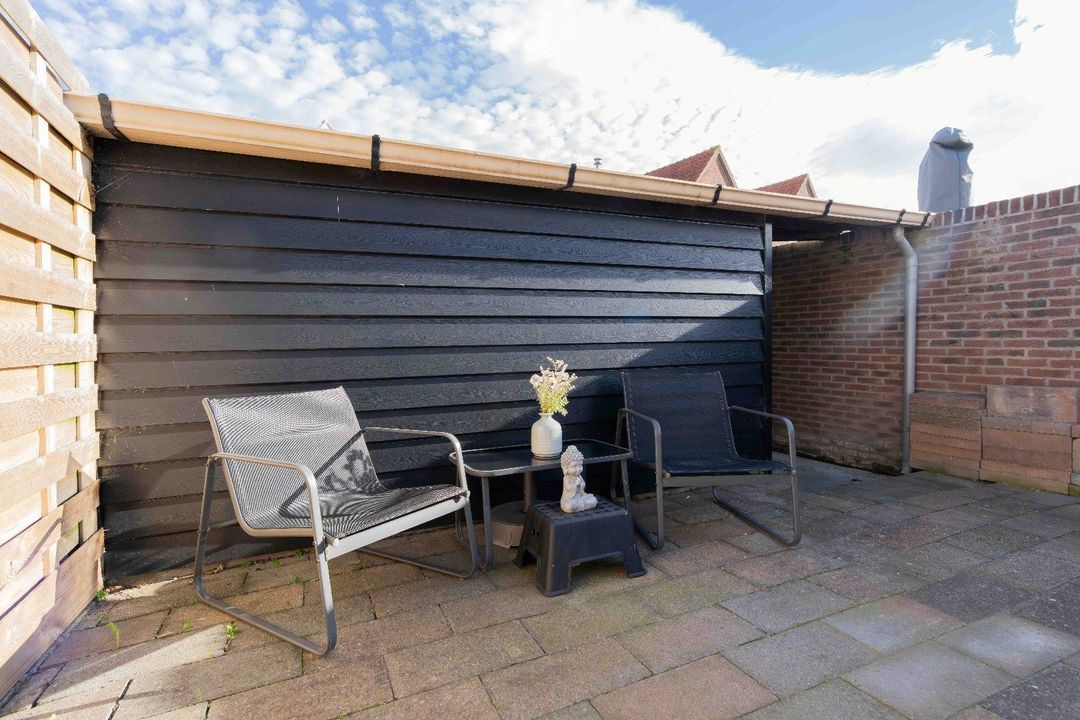 Via de achterdeur stap je de heerlijke tuin in, gelegen op het zuidoosten. De tuin is netjes aangelegd en voorzien van een overkapping en vrijstaande berging. Achterom bereikbaar – ideaal voor de fiets of container!