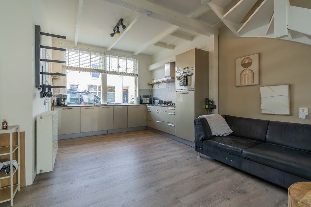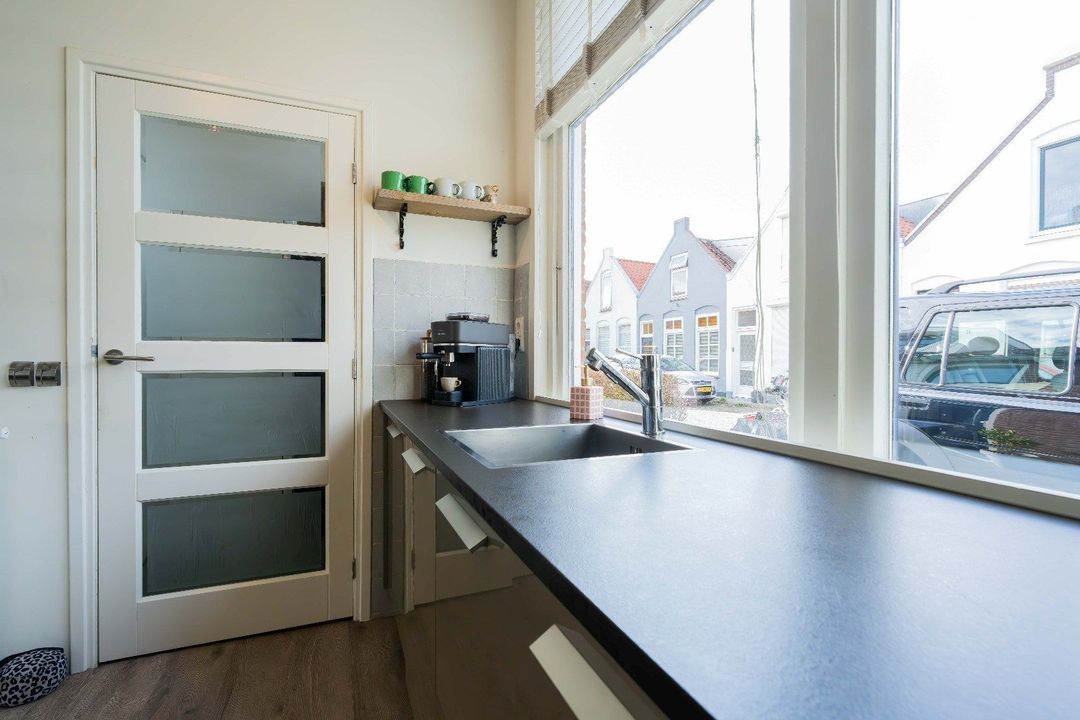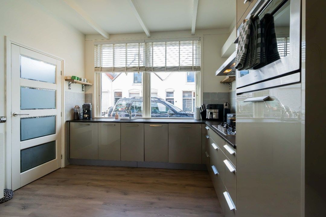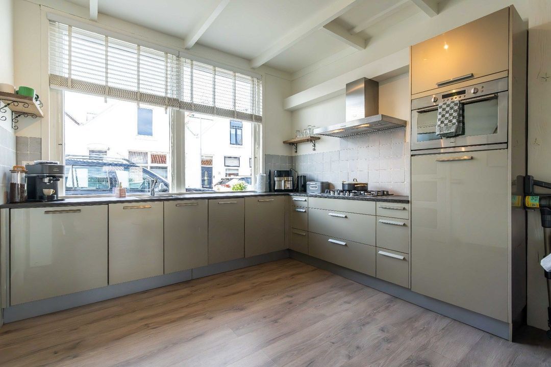 De lichte open keuken ligt aan de voorzijde van de woning en is uitgevoerd in een hoekopstelling met inbouwapparatuur. Vanuit de keuken kijk je gezellig naar buiten.